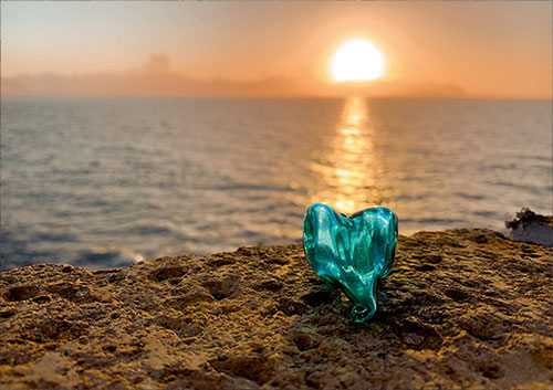 Hochwertige Grusskarte mit Glas-Herzmotiv und neutralem Couvert