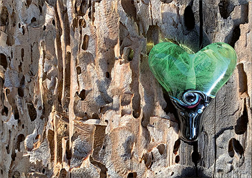 Hochwertige Grusskarte mit Glas-Herzmotiv und neutralem Couvert