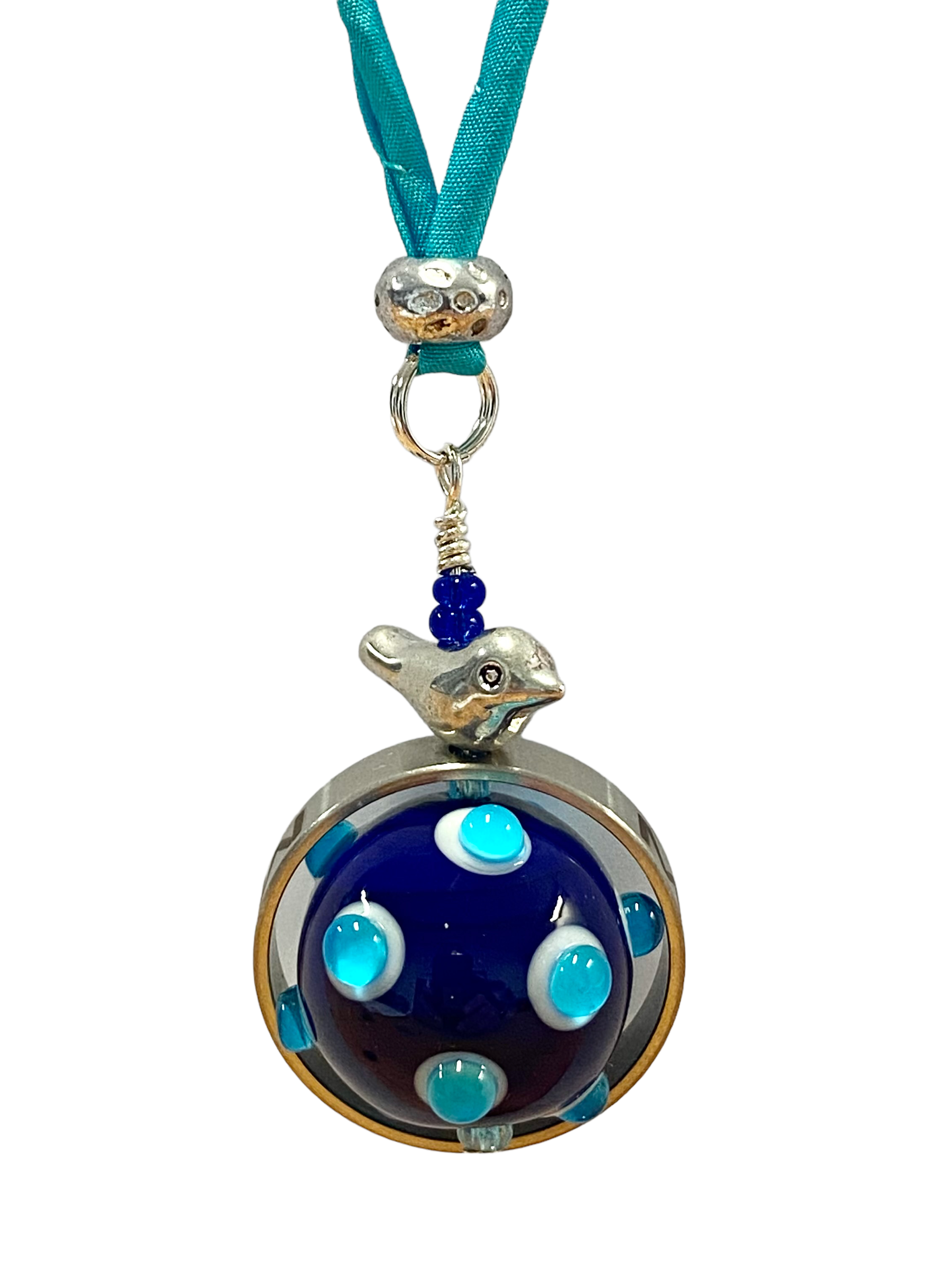 Der  Anhänger hängt an einem passenden Satinband und ist in der Länge individuell verstellbar.